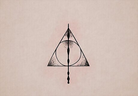 Deathly Hallows symbol The Deathly Hallows symbol looks like a triangle with a line down the middle and a circle at the bottom. Each of these elements represents a magical object: the Invisibility Cloak, the Elder Wand, and the Resurrection Stone. In the HP universe, these objects come from the Tale of the Three Brothers, a wizarding fairytale about pursuing wisdom and accepting mortality, so many people get this tattoo to symbolize these ideas.