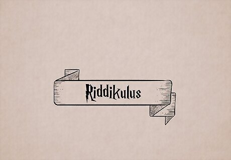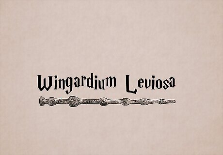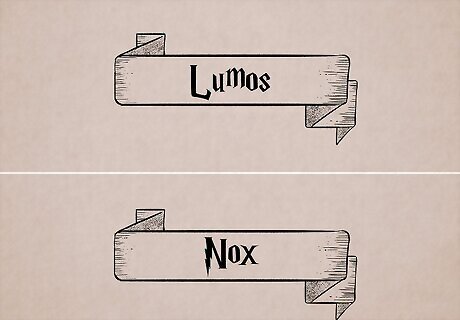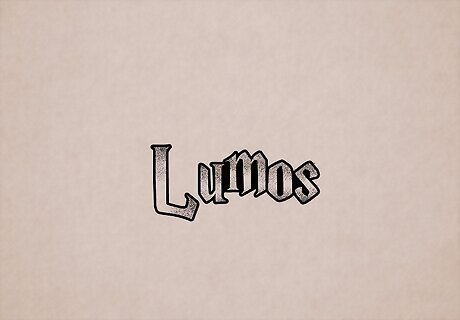 “Lumos.” “Lumos” is the spell that lights up the tip of a witch or wizard’s wand, and it’s used several times throughout the series. You can include just the word itself in a fancy font, or if you want to make the design a little more elaborate, you can include a wand shining light from its tip, too!
