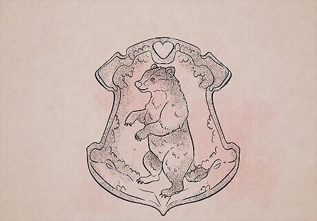 Hufflepuff house crest Loyal, fair, hardworking, kind… there’s a lot to love about being a Hufflepuff! If you want to show off your house pride, a Hufflepuff crest tattoo is an amazing option. Like all the house crests, it features Hufflepuff’s symbolic animal (the badger), and you can do it in black-and-white, or the Hufflepuff colors of yellow and black.