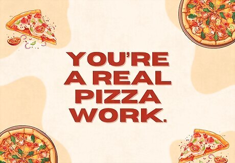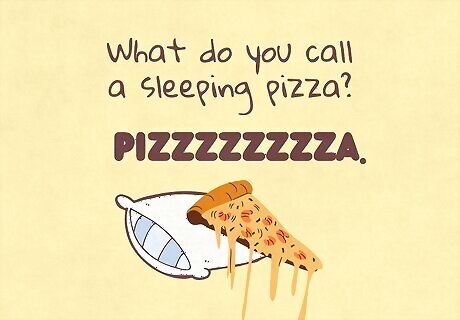 Choose a small joke to go with your extra-large 'za. These jokes may be short, but they sure pack a punch! They make an excellent (and hilarious) side dish anytime you’re chowing down on your favorite pizza pie: What do you call a fake pizza? A pepper-phony pizza. What’s the difference between a good pizza joke and a bad one? The delivery. What’s a poodle’s favorite kind of pizza? Pupp-eroni. What does an anteater like on its pizza? Ant-chovies. What do Homer Simpson and pizza have in common? D’oh! What do you call it when someone spreads germs all over the pizza? Little Sneezers. What is a pizza’s favorite movie? Pie Hard. What do anchovies, pineapples, and Domino’s have in common? They ruin pizzas. How does Good King Wenceslas like his pizza? Deep pan, crisp, and even. Why do restaurants put pizza in square boxes? They don’t cut corners. How do you make a musician’s car more aerodynamic? Take the pizza sign off the top. How do you get the guitarist off your front porch? Give him the 20 bucks for the pizza. Why did Jabba win the pizza contest? Because no one out-pizzas the Hutt. Why did the man cut his pizza with a smartphone? It’s cutting-edge technology.