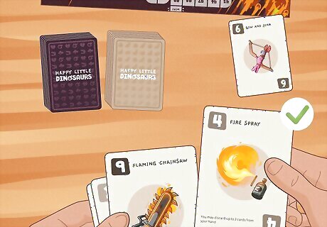 Prioritize card effects over card values. If you’ve got a high card that’ll probably win you the round, go ahead and play it. But if you’ve got a point card with a powerful effect, like one that lets you discard a bunch of cards you don’t want, play the card with the useful effect, instead. It’s a balancing act of winning rounds with high cards and using low cards to help set you up to win later rounds.