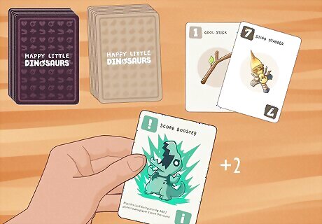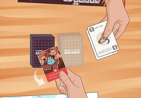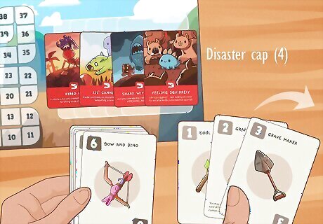 Use disasters to get lots of passive points. Disasters are double-edged swords. They put you at risk of losing, but they also give you points every single round you have them, and those points can add up! Bold, risky players can try to purposefully get disaster cards for passive points, while using effect cards that do things like protect you from further disasters to defend yourself. Remember that the only way to lose is by getting 3 of the same color, or 1 of each different color of disaster. So if you have 2 blues and 2 reds, you’ll be getting 4 guaranteed points each round. Of course, you’re also at a huge risk of going extinct…