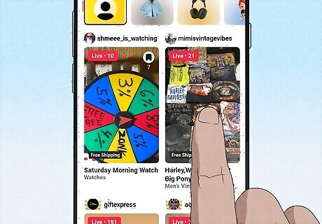 Join a livestream. When you signed up for your Whatnot account, you should have selected your interests so Whatnot could formulate a home page for you. You can either choose one of the streams from your homepage or search for an item you want to buy.