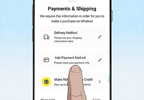 Add a payment method and shipping address. Before you can buy anything on Whatnot, you'll need to add a payment method and shipping address. To do this, follow these steps: Tap Account in the bottom-right corner of the screen. Tap Payments & Shipping. Tap Add Payment Method. Choose the type of payment method you'd like to connect. Follow the on-screen instructions to add your payment method. Once you're back on the "Payments & Shipping" screen, tap Add Shipping Details. Enter your address. Click Confirm Address.