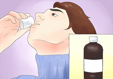 Rinse your mouth with diluted hydrogen peroxide. Hydrogen peroxide is an antiseptic and can reduce inflammation that irritates your mouth. Mix one part water with one part 3% hydrogen peroxide in a glass. Put a mouthful of this mixture in your mouth and gently swish it around for about one minute. Spit it out in the sink. Repeat a few times a day. There are hydrogen peroxide-based products available at grocery and drug stores that are geared toward treating mouth sores and offering relief, such as Colgate Peroxyl Mouthwash. The taste of hydrogen peroxide might be off-putting to some people, as is the foam that will inevitably generate from swishing it in your mouth.
