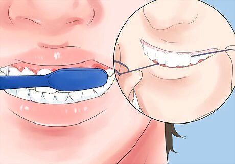 Brush and floss after every meal. When you have braces, you need to brush and floss after every time you eat, even when you are out of the house. Without this attentive care to your teeth, you risk getting cavities, swollen gums or other tooth problems. During the time you wear braces, your teeth need extra care. Carry a travel toothbrush, a mini tube of toothpaste and a small packet of floss with you when you are away from home so that you are always prepared to brush after eating. Make sure to brush all the teeth surface using a 45-degree angle with your brush to avoid plaque build-up near your gums.