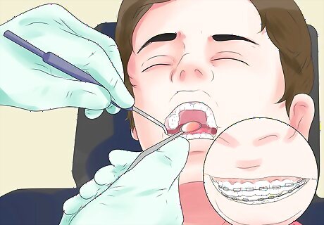Have your orthodontist snip protruding wires on your braces. Sometimes, there are short ends of wires on the braces that will protrude and rub against the inside of your cheek. These can be extremely uncomfortable and cause mouth sores. If you have these, ask your orthodontist to snip the ends off of these wires, and you should feel immediate relief.