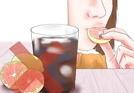 Avoid acidic drinks and foods. Acidic foods and drinks that contain citrus, for example, can aggravate mouth sores or other discomfort in your mouth. Avoid these to eliminate the possibility of further irritating your mouth.