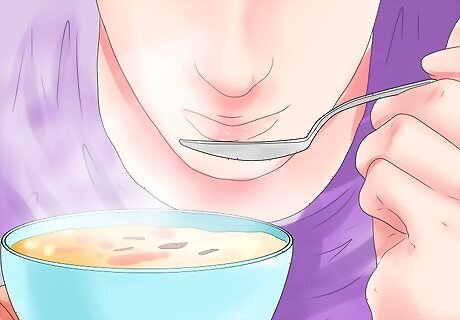 Eat soft foods for the first few days. The bulk of orthodontic brace pain will happen in the first 24 to 72 hours after braces are put on your teeth. During the first few days, eat very soft foods that don’t require much chewing until you are more accustomed to eating with braces. Foods like soups, applesauce and mashed potatoes are good choices.