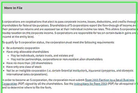File IRS Form 2553. Form 2553 requires basic information about your corporation, and tells the IRS that your corporation elects to be an S corporation. It includes a consent statement that must be signed by all shareholders. Pay attention to deadlines. If you use a 12-month calendar tax schedule, this form must be filed by March 15 of the year you want to claim the election. If you file it after March 15, the election won't take effect until the following tax year, though there are some exceptions.