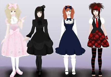 Explore Lolita types. There are many different styles of Lolita. There's Sweet Lolita, which uses bright pastels, lace, and overall sweet and "kawaii" themes; Gothic Lolita, which uses more blacks and whites and tends to be a darker, more elegant style of Lolita; and other less common subsets such as Classic Lolita, which favors a more refined and subtle fashion, or Punk Lolita, which might include accessories such as spikes and chains. Some Lolitas like to blend more than one style in their looks; however, this article will focus primarily on achieving straightforward Gothic Lolita dress and attitude.