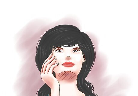 Wear naturally appealing makeup. One point at which Gothic Lolita culture diverges from American Gothic culture is makeup - Gothic Lolitas don't use whiteface or particularly dark eye and lip colors. A slightly smoky eye or red lip is acceptable, but generally Gothic Lolitas strive to wear natural-looking makeup.