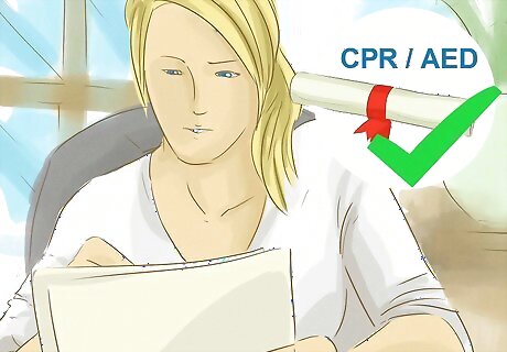 Meet the requirements for the certification. Once you have decided on a certification, it is important to review the requirements and make sure that you meet them. Some certifications may require additional training, courses, advanced degrees, workshops, and even memberships, while others are less demanding and will be content with just a high-school GED and some training experience. If you do not meet the requirements, you may have to attend additional classes or workshops. If you are eager to begin working as a personal trainer, consider going for the easiest, least-expensive certification first. This will allow you to get "your foot in the door." You can always get another, more prestigious certification later when you have more time, money, and experience. Be sure you have a certification in CPR and/or AED, as almost all personal trainer certifications require it.