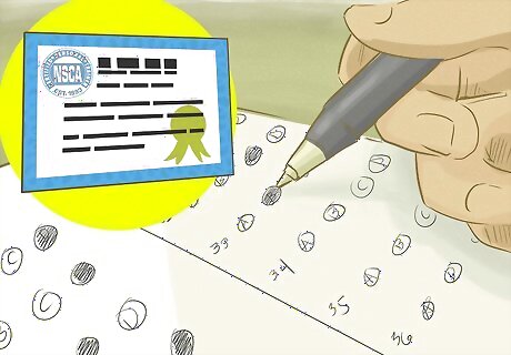 Pass your test and earn your certification. After you have prepared and studied for your certification, register for the exam and take it in the time allotted. Most exams are between 2-3 hours long, and you have to take them within several months of signing up. Keep in that some certifications require you take re-certify every couple of years, while others will require you to continue attending courses and workshops.