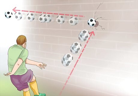 Speed up your reaction times. A goalie must be able to anticipate the opposing players’ move and react accordingly. Drills can help you speed up your reaction times, which may be the difference between effectively defending a shot on goal or failing to stop it before it enters the goal. One good exercise to train your reaction times is to kick a soccer ball at a wall with different parts of your foot and then trying to stop it from getting past your body.