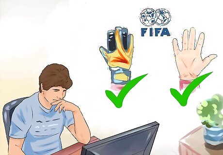 Learn rules specific to your country or organization. Because there are rules that govern soccer matches specific to certain countries and organizations, learn any differences there may be in your country or the organization for which you play. This will keep you from making mistakes that could cost your team the match. For example, some organizations may require you to wear goalkeeper gloves whereas FIFA allows individual goalies to choose if they want to wear gloves.
