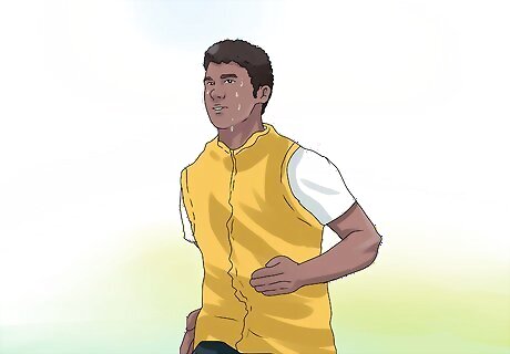 Train your cardiovascular system. Soccer is a fast-moving sport that requires a lot of running over the course of a 90-plus minute game. Even though you’re guarding the goal and may not be running as much as a forward, you still must be physically fit and prepare to run quickly in and out of the goal box and even on the field. Running is one of the most important activities for a soccer player and a goalie. Aim to run at a decent pace for at least 90 minutes to ensure that your body is able to handle the rigors of the game. You’ll also need to sprint in and out of the goal area to protect it from shots and potential shots on goal. It’s a good idea to train for this by running sprinting drills. For example, you could do 10 sprints of 100 meters (330 ft) so your body is prepared to accelerate quickly in and out of the goal.