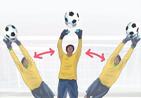 Attack every ball that comes at you. Any ball traveling in the direction of the goalie can end up between the goal posts. It’s important to actively anticipate and attack any ball that comes towards you so that you don’t give the other team easy goals. Meaning, even if it is kicked higher than your height, jump!