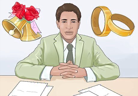 Set up a marketing strategy. Successful advertising will help you attract clients and build your professional network. Using print media -- brochures, a website, or ads in publications -- is one way to market yourself. Appearing at wedding conventions is another way to market your services. Getting involved in community activities is a type of free marketing. Donating a service or making a contribution to charity sends a message to the public you want to serve.
