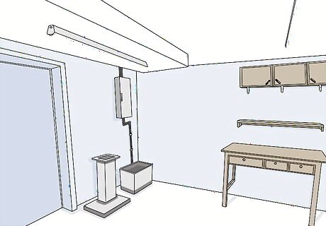 Keep your workshop well lit so you can see what you’re doing. Don’t work in areas that you can’t see clearly since you could put yourself at a higher risk for injury. Place your main work surface or tool bench underneath bright light bulbs to help you see better. If you aren’t able to move your work surface, get lamps that clamp to the tabletop and point them in the direction you’re working. Fluorescent or LED bulbs work best for workshops since they’re bright and energy-efficient.
