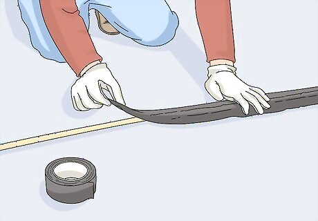 Tape extension cords to the floor to prevent trip hazards. If you don’t have outlets right next to your work surface, get a grounded extension cord that’s long enough to go from the nearest outlet to where you plan on using your power tools. Lay the cord flat on the floor so it doesn’t have any tangles or snags, and plug it into your wall outlet. Place duct tape over the entire length of the cord that crosses through areas with foot traffic so your foot doesn’t get caught. Look for solid extension cord covers that you feed the cable through at hardware stores if you don’t want to put tape on your floor.Warning: Don’t plug multiple extension cords into one another since they could short and create sparks.