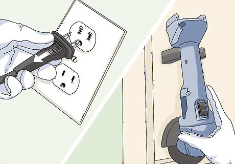 Unplug and store tools whenever you aren’t using them. Whenever you finish using your tools, turn them off and unplug them from power as soon as possible. Carry the tool by the handle with the blade or point facing down and keep it in a safe place. Make sure the tool doesn’t fall or get damaged wherever you store it, or else it won’t be safe to use next time. Keep tools high off the ground if you children so they aren’t able to reach or use them. Disconnect power from your tools if you need to change a blade or make adjustments.