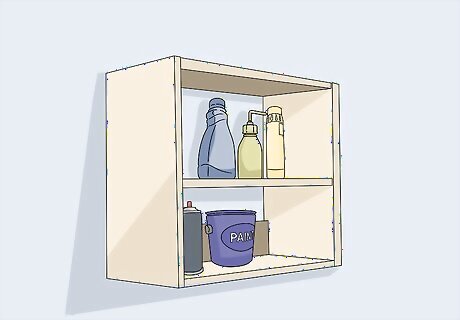 Store chemicals in cabinets or shelves away from your tools. Inspect the chemicals you have in your workshop and make note of any safety or storage information on the label. Put anything that’s labeled “toxic” inside of a cabinet raised off the ground so children can’t access them. Make sure the lids or caps are tightly secured so fumes don’t build up inside of your workshop. If the chemicals say that they’re flammable or combustible, keep them away from power tools on a metal shelf so they’re less likely to ignite. Avoid using chemicals that have bleach or hydrofluoric acid since they can be toxic and interact with other chemical fumes. Don’t keep chemicals next to power tools, open flames, or heaters since this can cause them to combust.