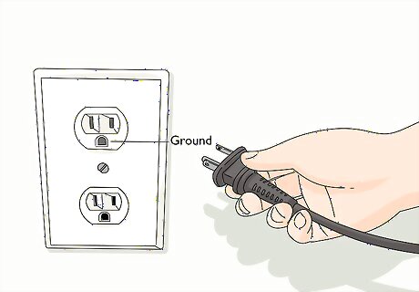 Plug power tools into a grounded outlet to avoid getting shocked. Only use outlets that have the proper power supply required for the tool so they work the most effectively. Make sure you use an outlet or extension cord that has a grounding port, or else you could risk the tool shorting out. Be careful not to plug too many tools into the same outlet or circuit since you could cause it to overload. Never remove the grounding prong from a power tool since you could increase your risk of an electrical fire or electrocution.