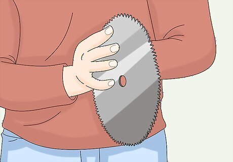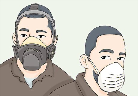 Put on a dust mask or respirator to protect your lungs. If you’re working with wood or metal, wear a dust mask that covers your mouth and nose when using your tools. The mask will keep any sawdust or debris out of your lungs so you don’t damage them. If you’re working with chemicals that create fumes, opt for a respirator that has chemical filters so the harmful gases can’t pass through them. You can buy dust masks or respirators from your local hardware store. Always read the labels for any chemicals you use to find out if you need a respirator for them.