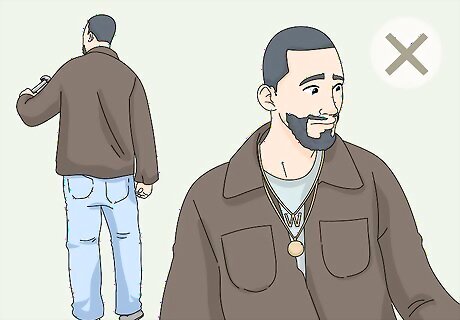 Avoid wearing loose-fitting clothes or large jewelry. Clothes that have long, flowing fabric or loose sleeves can easily get caught in tools and hurt you. Opt for clothes that fit tightly and don’t get in the way of your hands. If you normally wear hanging jewelry, such as bracelets or necklaces, take them off before you start and set them away from your work surface. If you’re working with metal or flames, wear clothing made from natural fibers since they’re less likely to get damaged or melt.