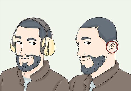 Wear earplugs or earmuffs when working with loud power tools. Power tools get loud and can damage your hearing after long periods of time. If you’re using in-ear plugs, roll them in your fingers before pushing them in your ears. Allow the earplugs to expand completely in your ear before starting your tools. If you want an over-ear option, look for shop earmuffs that block out noise instead. Get earplugs that have a lanyard or string holding them together so you can hang them around your neck when you aren’t using them. Cup your hands over your ears after putting in earplugs and listen for a change in volume levels. If nothing changes, then you put the earplugs in properly. If you notice a difference, take the earplugs out and try readjusting them again.