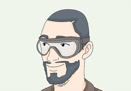 Wear safety glasses whenever you’re working in your shop. Many tools create dust or throw pieces of material that can damage your eyes. Look for safety glasses that completely cover your eyes and wear them whenever you’re working in your shop. Keep the glasses in a safe area where they won’t get scratched or damaged when you aren’t using them. If you’re working on small pieces of material or you can’t see very well, look for safety glasses that have LED lights on the sides. If you’re welding or working with metal, opt for a full face shield since it will protect you better.