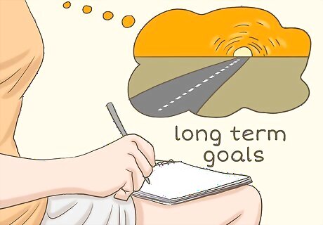 List long term goals. It is also a good idea to create some goals that will take longer to accomplish. When listing your long-term goals, remember to keep your priorities in mind. Also remember to list things that are reasonable and attainable. A long-term goal could be, "I will be promoted to Senior Analyst within the next year." An example of a personal long-term goal might be, "I will travel to visit my extended family for a week each summer."