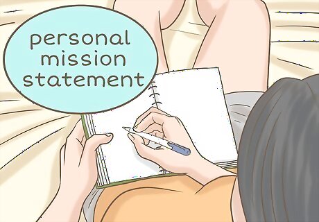 Create a personal mission statement. In addition to listing goals, you should consider writing a personal mission statement. This is a document that outlines your values, goals, and skills. It can serve as the framework for future goal setting. To start, list your core values. These might be something like: family, career, education, spiritual health, etc. Identify what you want to accomplish. For example, you might write, "I wish to make the world a better place by being a great dad and an excellent attorney. Then include the ways that you will make those things happen. For example, "I will spend time with my son every day and offer him encouragement."