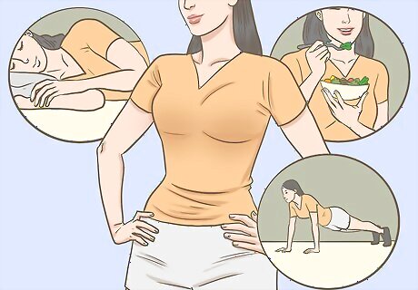 Include physical health. When you are creating your goal-related documents, don't forget to include some physical goals. Your physical health is important. The mind-body connection means that the health of your body will impact your moods. If you don't feel well, it can be hard to make positive life changes. Get plenty of rest. Most adults need about 7-9 hours of sleep per night. Eat a healthy diet. Choose meals with a combination of fresh fruits and veggies, whole grains, and lean proteins. Exercise. Try to get at least 30 minutes of physical activity most days of the week. Try a yoga class or an outdoor hike to add some variety to your workouts.
