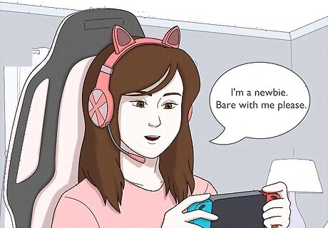 Pick up the slang. Each genre and even each game develops its own slang, which can be bewildering for a newcomer. There are a few terms that are used all across gaming, to one degree or another, so use this list as a head start. A newbie is a player who's just started playing the game. "Noob" is a somewhat rude synonym. Afk means "away from keyboard" — the player is taking a break. gg means "good game," something polite to say after the game ends. 1337, l33t, or leet all mean "elite," or highly skilled. This is old school slang, now often used as a sarcastic or self-deprecating joke. When someone is pwned, they're losing horribly to an opponent.