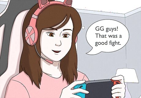 Show good sportsmanship. You won't always receive it yourself, but the mature players will respect you for keeping the atmosphere friendly. At the end of a game against a stranger, tell your opponent "good game" or "gg," and offer a handshake if playing in person. When playing a team game, don't criticize a player who's not doing well, unless he's actively sabotaging your effort. Against your friends, light-hearted boasting and insults is usually expected, not handshakes and formality. If anyone gets angry, take a break so he can cool down.