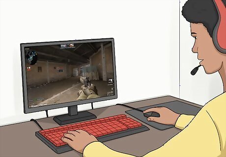 Upgrade your hardware. If you love to play the newest multiplayer game on the best graphics setting, you could be facing $1000 or $2000 in computer upgrades, but that's the extreme case. There are many cheaper accessories that can make gaming life easier, and that's all you should consider if you tend to play older games, games with simple graphics, or games that don't require reflexes. A gaming mouse and ergonomic keyboard that comfortably fits your hand is invaluable for many games. If you're playing on a laptop, any external mouse and keyboard at all is better than your track pad and built-in keyboard. A headset will let you communicate with allies in multiplayer games, without having to spend time typing.