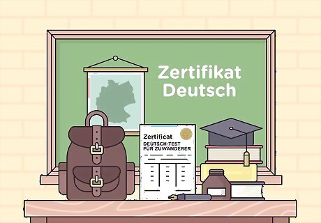 Learn to speak German conversationally. Your German must be at a “B1” level. This means that you can speak and read German well enough to perform basic tasks and to communicate your needs. To prove your language skills, you may either present a “DTZ” certificate from an integration course or take a language exam to receive a Zertifikat Deutsch certificate. A high school or university diploma from a German institution may also work. Most language schools and community colleges in Germany offer language courses and exams.