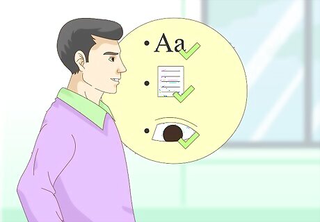 Have the necessary training. A good understanding of English spelling and grammar is essential to becoming a proofreader. You'll also need to be able to focus for long periods of time, and be attentive to details. A degree in English can be helpful, but is not required. You must have good vision.