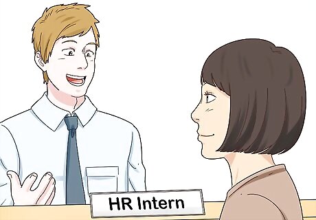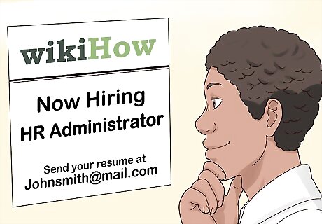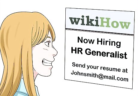 Get an entry-level job in an HR department. Look for local job postings that say “HR administrator, “HR coordinator,” or “HR assistant.” When you apply, make sure you mention any degrees, internship experience, or relevant skills you have in your cover letter and on your resume. Do the same if you get called in for an interview. Don't panic if you don't get a job right away. Keep persisting until you find something!