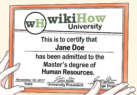 Get your master's degree so you have a better chance of getting the job. While it's not always necessary for an HR generalist to have a master's degree, the extra education can impress employers and better prepare you for the position. It also lessens the number of years you'll need to work your way up the HR ladder to a generalist position. If you do decide to get your master's degree, get it in science, business, or law.