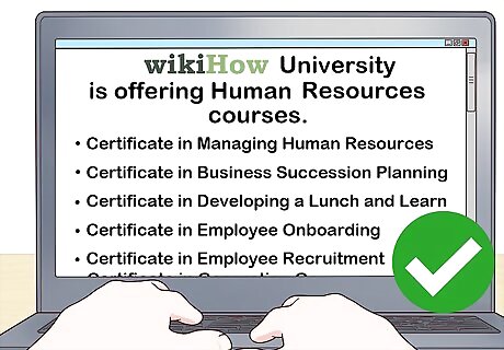 Enroll in an undergraduate human resources program. Most entry-level HR positions require candidates to have a bachelor's degree in HR or a related field. Having your degree will also shorten the number of years of experience you'll need before you can become an HR generalist. As an HR generalist, you'll need to be familiar with all aspects of HR, so take as many HR courses as you can when you're getting your degree.