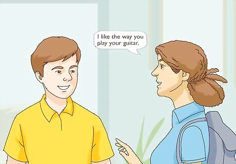 Compliment your crush. Even a compliment is fine, guys like being complimented. So do girls. See? It's not a girl vs. guy thing; it's simply a human thing. Make it a point to talk to them everyday. You can't just talk to them one day, then skip the next. You need to make it gradual. So think of this conversation-thing as an engine when you start a car; once it's on... you keep it running.