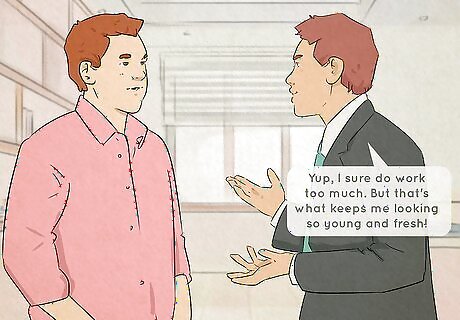 Use humor. There are many ways that dealing with family members can be tough. Maybe they criticize your life choices. Or maybe you have a grandparent who constantly complains. Humor can be helpful in dealing with all kinds of annoyances. Try to deflect insults with humor. You could say, "Yup, I sure do work too much. But that's what keeps me looking so young and fresh!" Say things in a light tone of voice. For example, if an argument is brewing, try laughing and saying, "Hey, I thought this was a party, right?" Bring up a funny memory. If the conversation is uncomfortable, change the topic. Try, "Hey, remember the time Mom burned the turkey and we had to order in Chinese food for Thanksgiving?"