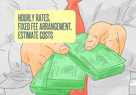 Discuss fees. You definitely want to know how much the lawyer charges. Unfortunately, they don’t publish this information on the Internet, so you might find out you’re talking to someone whose fee you absolutely cannot afford. Ask the following questions about fees: What is the lawyer’s hourly fee? Can you get a fixed-fee arrangement instead? This is a set amount of money you pay regardless of how much work the lawyer does. What is the lawyer’s estimate for how much it will cost to defend you? The lawyer can’t make promises, but you can ask for a ballpark figure.