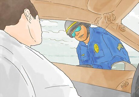 Follow the officer’s directions. The officer might ask you to step out of the car. If so, then you should comply. The officer might also ask that you stop smoking or turn your music off. You should always follow the officer’s instructions. If you get out of the car, remember not to lean against it. The officer might assume you are unsteady because you are intoxicated.