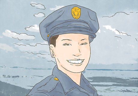 Pull over when safe to do so. As soon as you see police lights in your rearview mirror, you should be looking for the first safe place to pull over to the side of the road. After stopping, turn your engine off and roll down your window. If it is at night, then turn on the light inside your vehicle. This will allow the officer to see you as he or she approaches. After you turn on the light, don’t make sudden movements. The officer might believe you are trying to hide something, such as a beer bottle. Sit with your hands on the steering wheel.