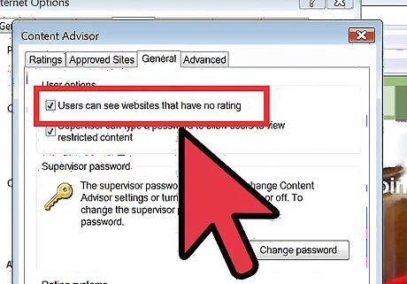 Click on the General tab. Make sure to select Users can see websites that have no ratings