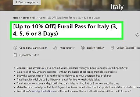 Find any discounts that apply to you. Depending on your age or life stage you may be eligible for an extra discount. Some railways have special internet fares for customers who book online. In most areas being under 26 or over 60 years old will qualify you for a young adult or senior ticket. Age requirements differ depending on the train line. Be prepared to show your ID card to prove your age. If you are a student, check the fine print on the website before you book a student fare. Many railways only give student discounts to passengers who can show a student ID from the country or region in which the train operates.
